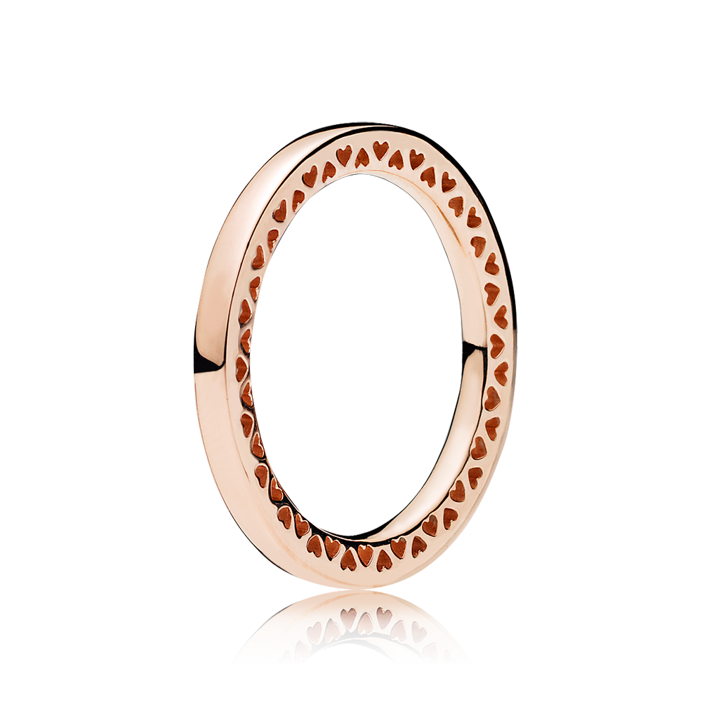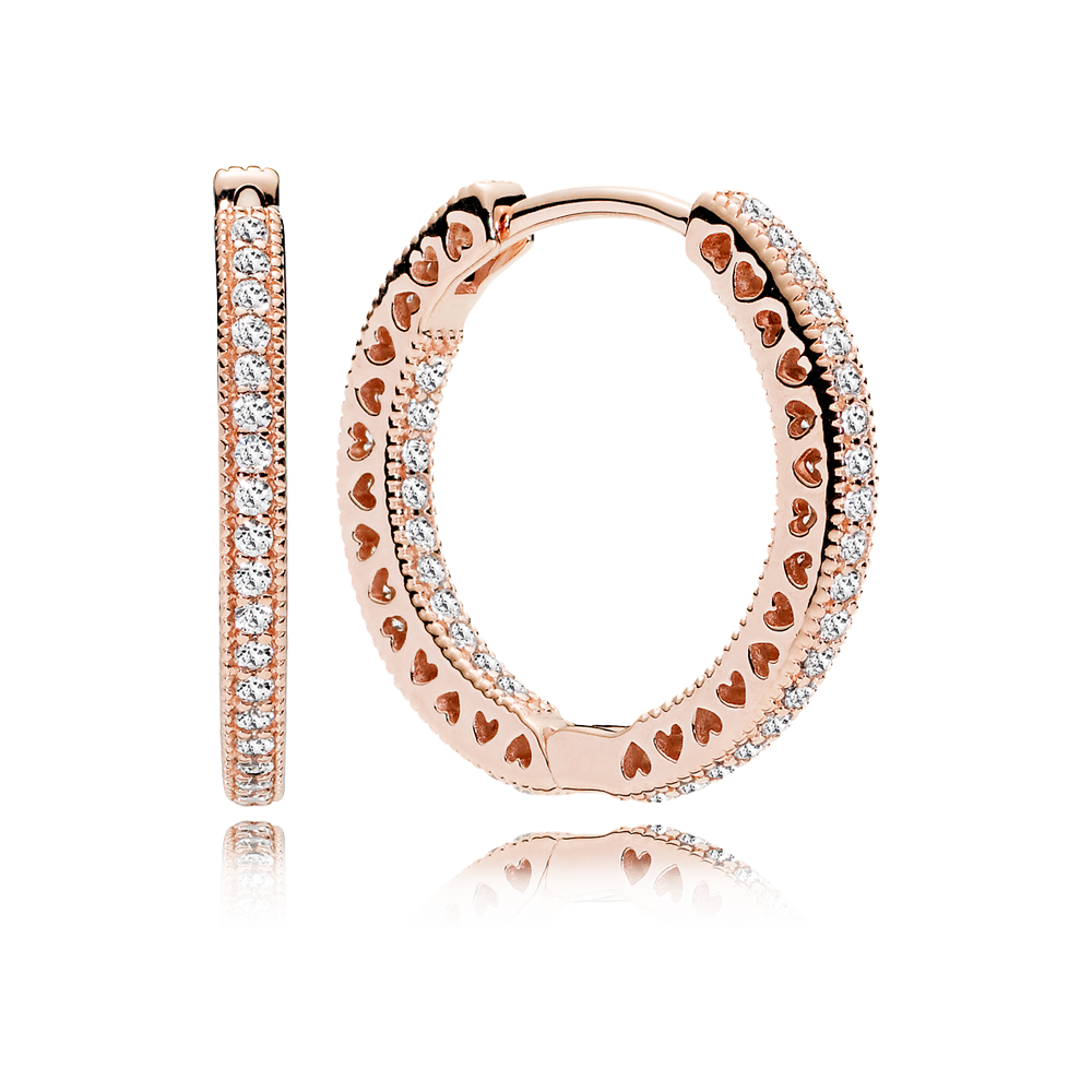 The new Dazzling Droplet, Pink Radiant Droplet and Radiant Hearts charms in Pandora Rose are adorned with the glow of tonal pink stones. The Hearts of Pandora series are adorned with subtle embellishments such as micro-set stones, and rings are cast in the shade of blushing metal. The ubiquitous Pandora hoop earring now gleams with the lustrous pink metal blend, and finished with a row of delicate cut-out hearts that lend lightness to the design.