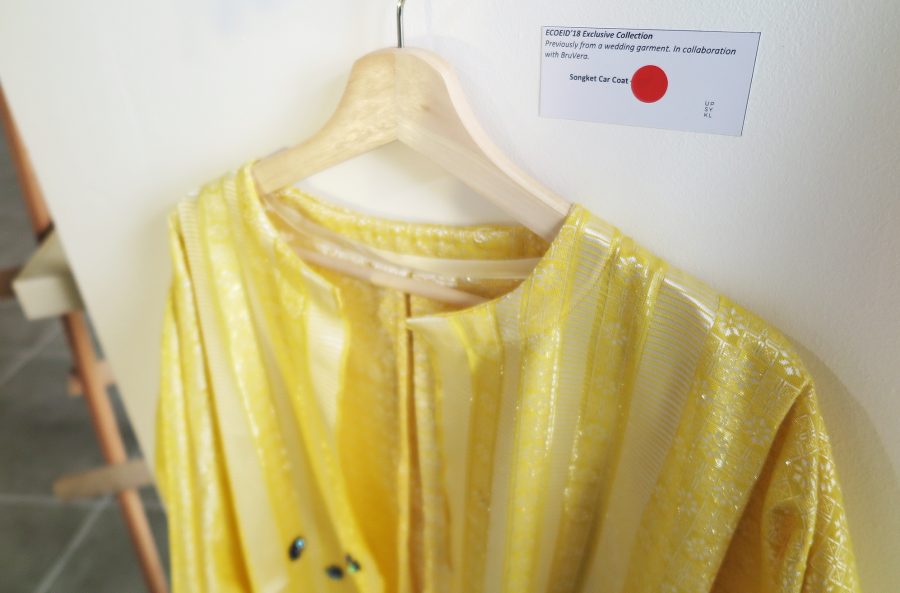 A timely collaboration with local online e-commerce platform, BruVera Enterprise, saw a sizable donation of a complete set of songket bridal and groom attire added to UPSYKL’s inventory just in time for the designing of the Eid collection. The traditional Bruneian bridal garments, initially rented out by BruVera for weddings, resurfaced during the pop-up sale as outerwear coats, cardigans, skirts and baby doll dresses which were sold out almost immediately.