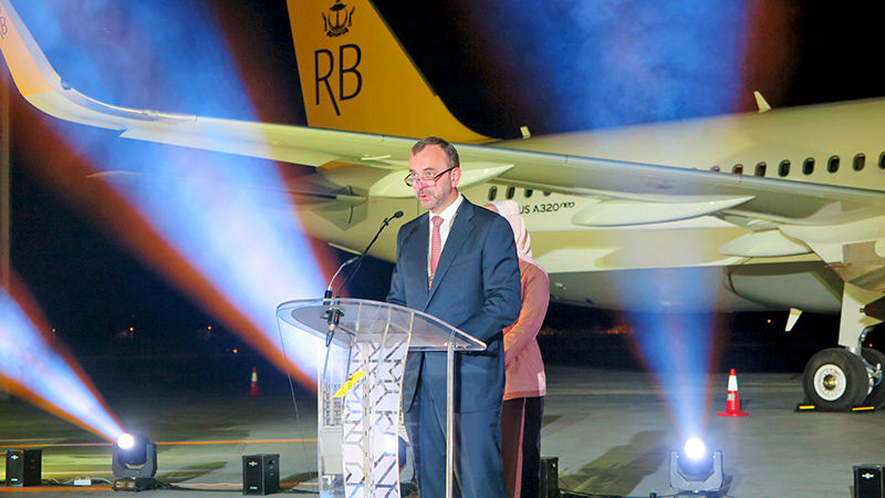 Present to officiate the launch was guest of honour Yang Berhormat Dato Seri Setia Awg Hj Ali bin Hj Apong, the Minister of Primary Resources and Tourism. Also present were Yang Berhormat Dato Seri Setia Dr Awg Hj Mohd Amin Liew bin Abdullah, Minister of Finance II and Chairman of RB Board of Directors; Yang Berhormat Dato Seri Setia Awg Abdul Mutalib bin Pehin Orang Kaya Seri Setia Dato Paduka Hj Mohammad Yusof, Minister of Communications; Mr Karam Chand, RB Chief Executive Officer (CEO); and Mr Jean Francois Laval, Airbus Executive Vice President (EVP) Asia.