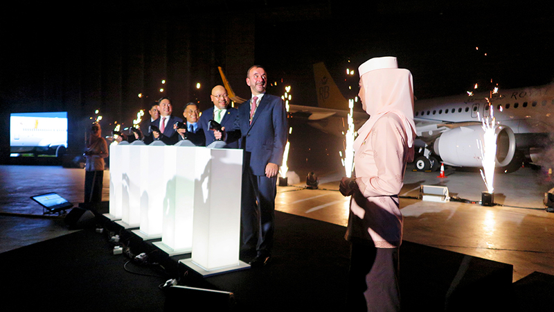 After the blessing ceremony, guest of honor Yang Berhormat Dato Seri Setia Awg Hj Ali bin Hj Apong along with the RB CEO and esteemed guests, took to the stage to officially launch the RB A320NEO with a burst of fireworks and a kaleidoscope of colourful lights.