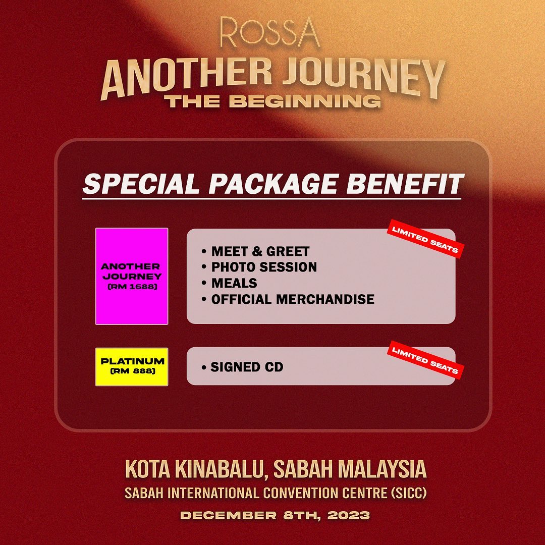 - Another Journey: RM 1668 – Includes a meet & greet, meals, official merchandise and a photo session with Rossa