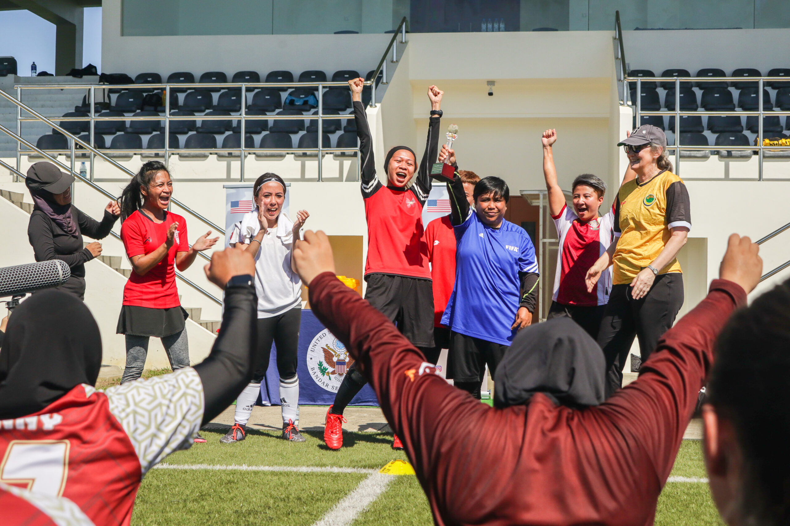 Women’s soccer teams in Brunei were treated to a rare opportunity to practice their skills thanks to the US Sports Envoy Program which enabled former U.S Women’s National Soccer Team players Lorrie Fair and Amy Griffin, to conduct a riveting program of motivational talks, coaching clinics nad training sessions with a focus on gender equality, empowering youth and promoting sports development.