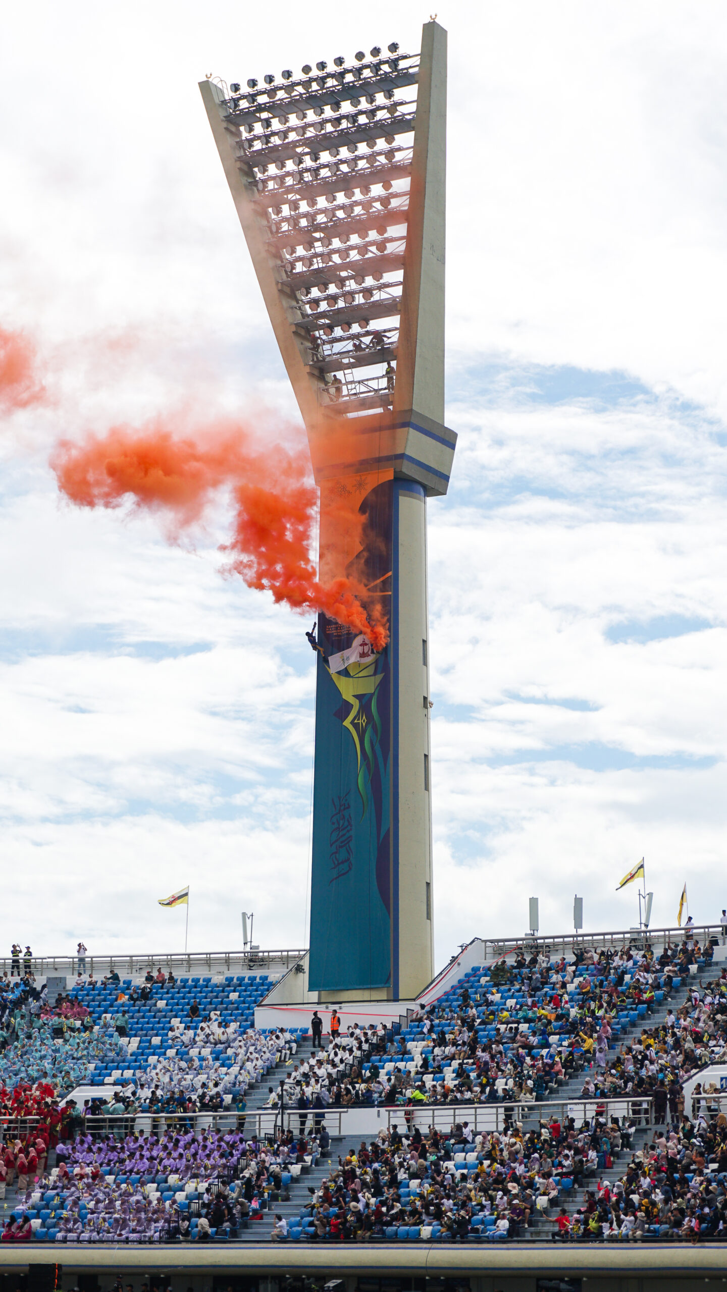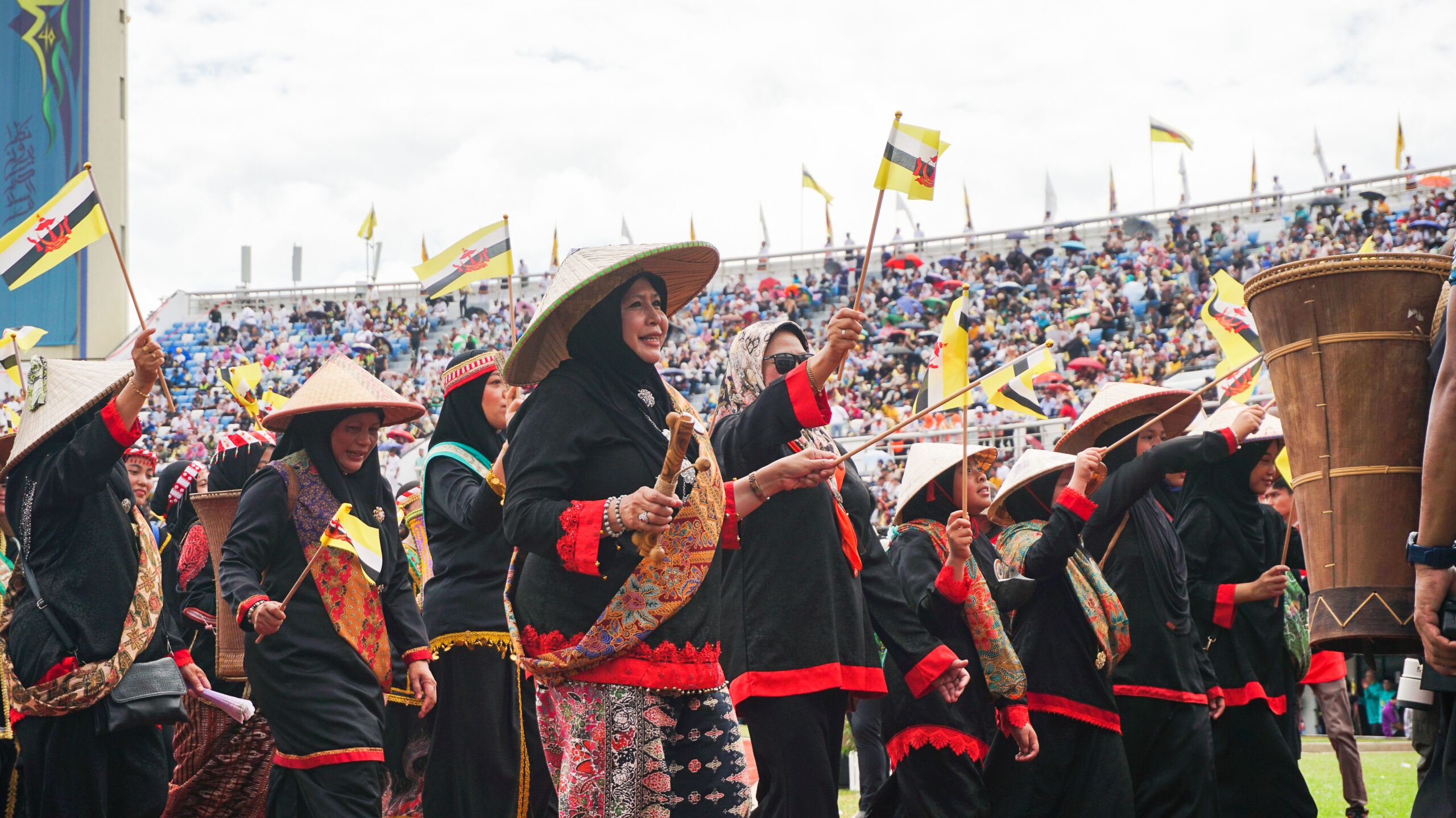 This year’s celebrations included a special parachute flight entry into the stadium by Pasukan Payung Terjun ABDB, marching processions from the various communities and civil servants of Brunei, and special performances that include the seven puak (tribes) of Brunei.
