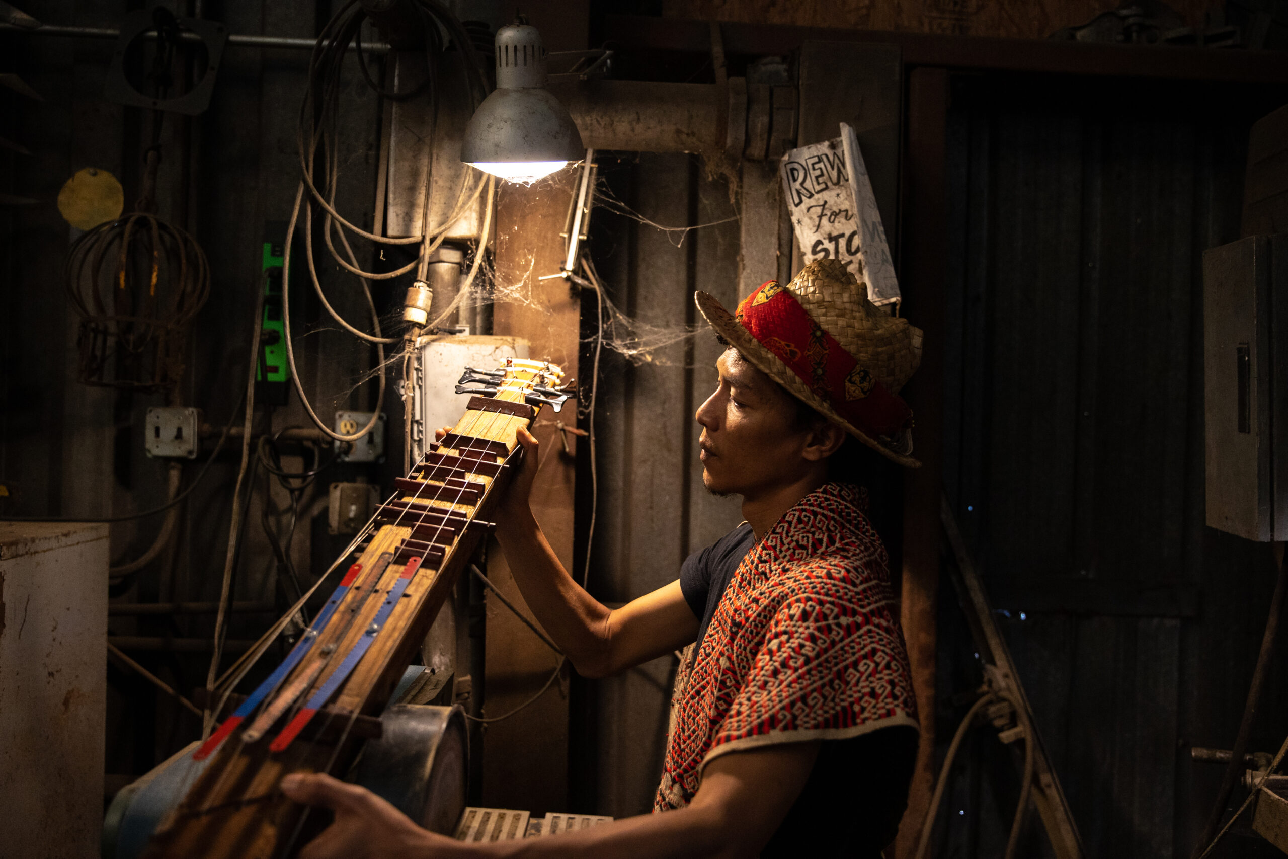 ‘If it can be dreamt, it can probably be made’ seems to be the ethos of Kalimantan composer and musician Juan Arminandi who’s been honing his craft for over a decade. He studied musical composition with Diecky K. Indrapraja between 2012 and 2015, and since 2018 has been studying experimental music and the building of musical instruments with Wukir Suryadi. He created his first instrument in 2018, based on the Sape’ and Selodang — traditional instruments from West Borneo — ca;;ed it Mu74n (Mutant).