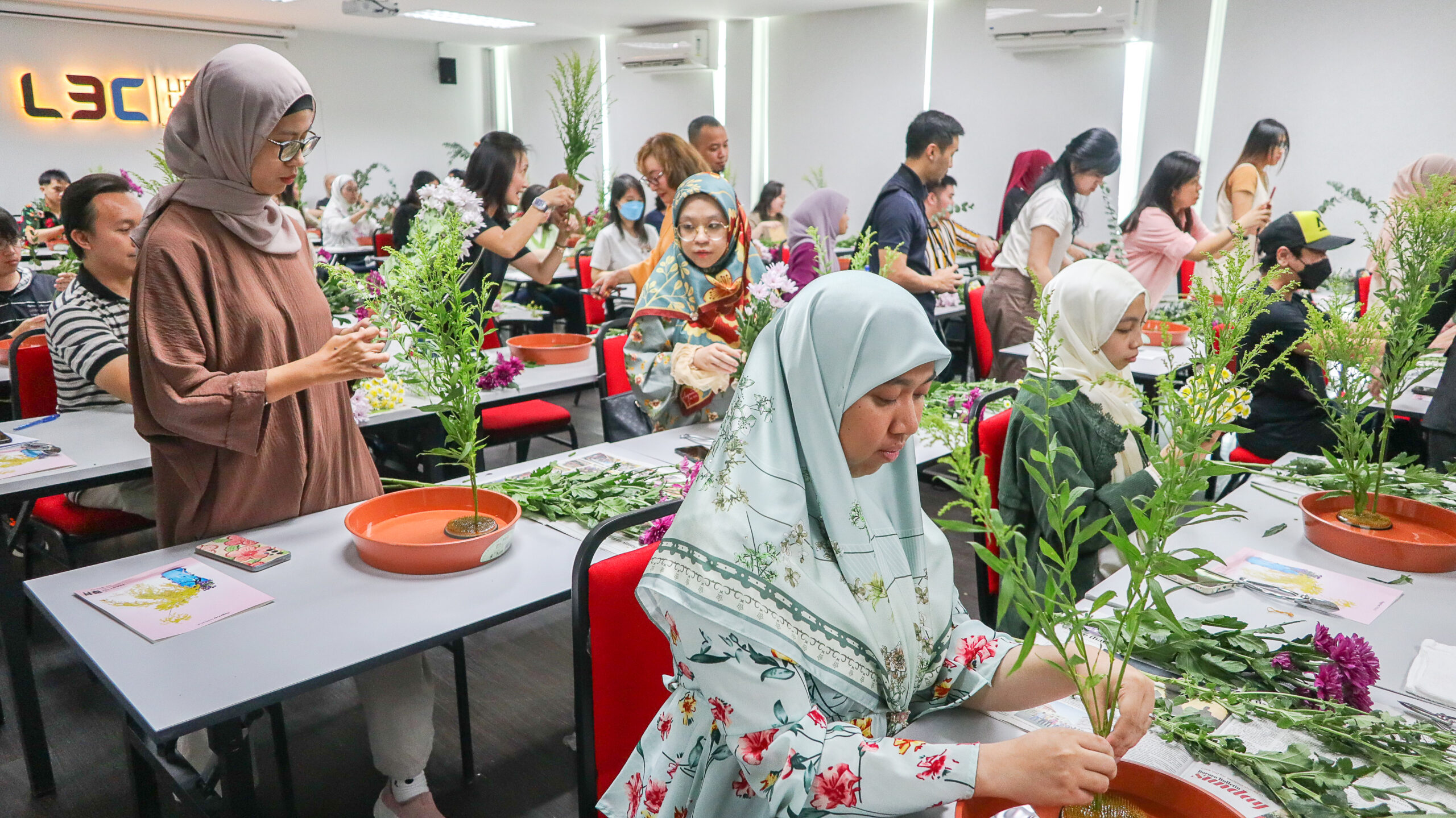 Elegance and creativity were on full display during the Sogetsu Ikebana Workshop at the Lifelong Learning Centre (L3C) in Lambak Kanan. Ninety participants joined the workshop on the true art of flower arrangement from certified Sogetsu Ikebana instructors from Japan. This was also under the arrangement by the Asahi Cross Cultural Exchange (ACCI).