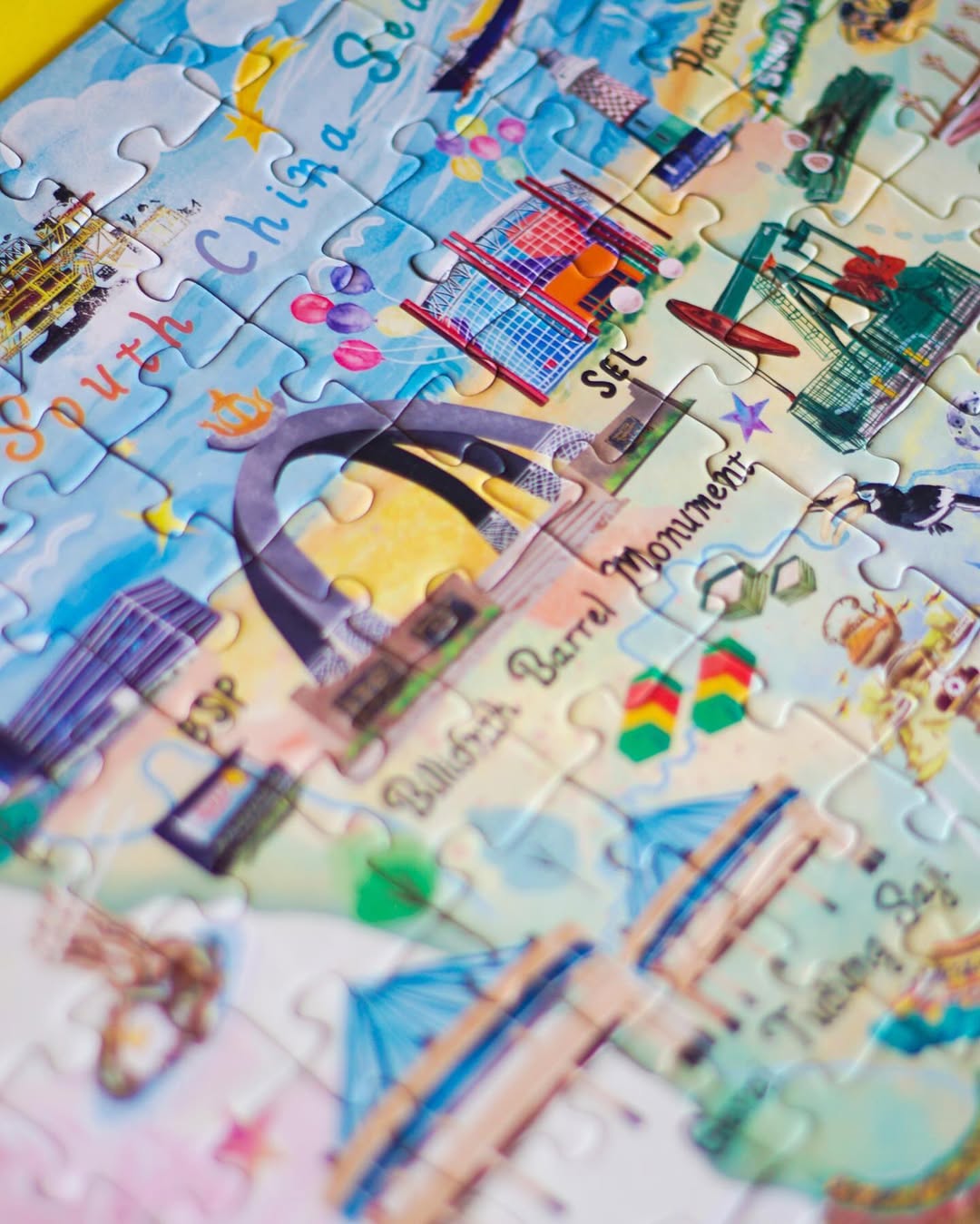 Joanita Zain: Earlier this year I launched the first Brunei themed puzzle and I’m so thankful for the love for it! I’ve been working on a new Bandar themed puzzle with lots of details — landmarks, monuments, activities the diversity found in Bandar. It will be a little more challenging to puzzle, I think 500 pieces. Look out for it coming soon!