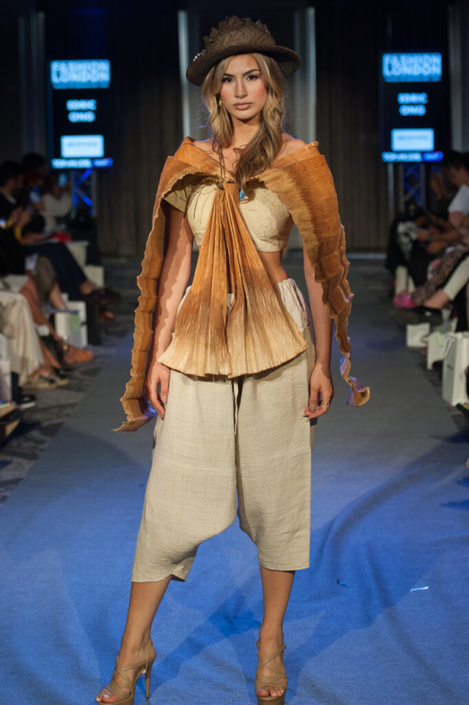 Edric Ong: Yes, during the Covid-19 lockdown I managed to spend time at my home studio hand painting my silk kimono tops using architectural drafting techniques of black ink and pen. I created mountains and clouds and waves. I exhibited that collection at the Four Seasons Mall gallery in Kuala Lumpur with the theme ‘Artist in Nature’. My Bark Cloth collection for London Fashion Week 2023 was also a play on Form and Textile manipulation.
