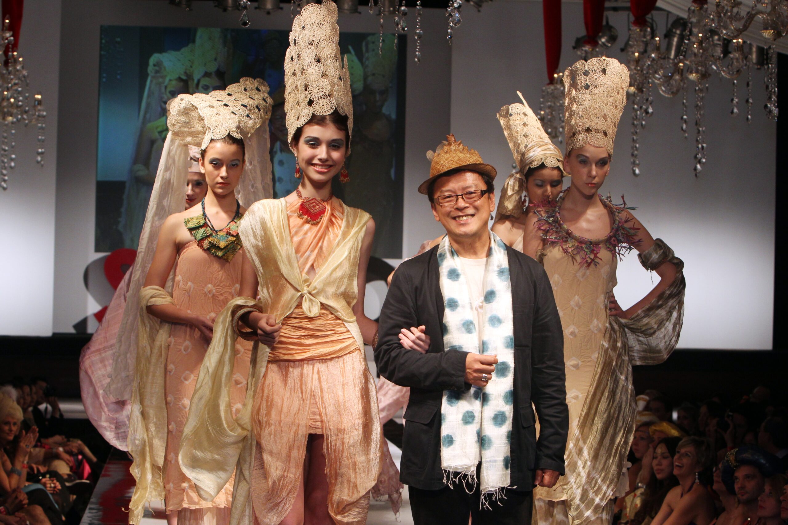 Edric Ong: I have no formal training in fashion. As a teenager, I followed my mother (was an immaculate Nyonya lady who innovated the Kebaya dress for herself) to the fabric shops and tailor. And also my elder sister, who was very fashion conscious. Later on, my first designs were wedding dresses for my cousins! IN secondary school, at St. Thomas in Kuching, I was keen on wood block prints and experimented using banana stem printing on my old shirts!