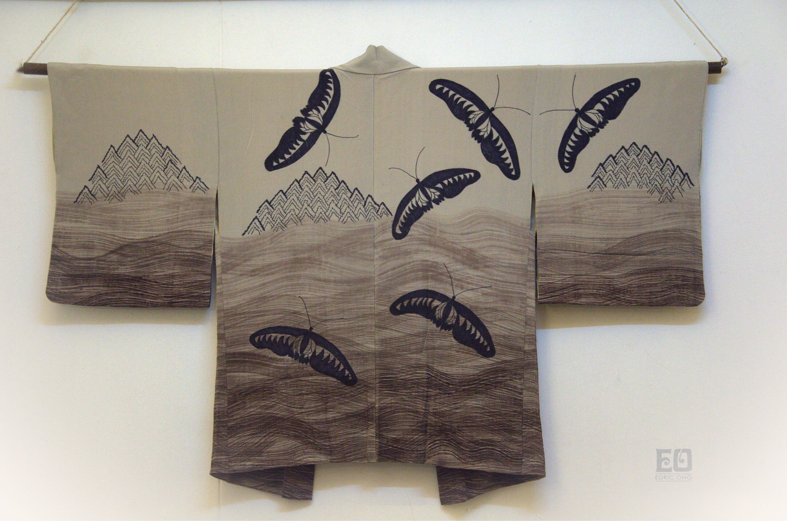 Edric Ong: Yes, during the Covid-19 lockdown I managed to spend time at my home studio hand painting my silk kimono tops using architectural drafting techniques of black ink and pen. I created mountains and clouds and waves. I exhibited that collection at the Four Seasons Mall gallery in Kuala Lumpur with the theme ‘Artist in Nature’. My Bark Cloth collection for London Fashion Week 2023 was also a play on Form and Textile manipulation.