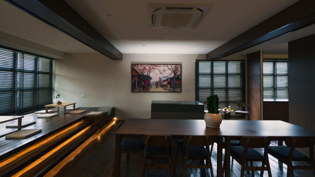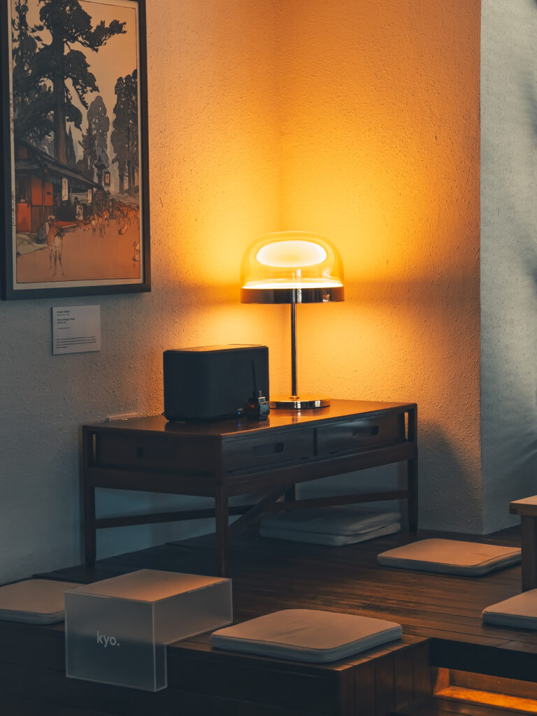 It’s an unassuming place that the new KYO has decided to open at. Tucked into a second-floor corner of a quiet building in Gadong proper, it’s distinctly reminiscent of a Japanese tea house on the inside – so much so that even the air here even feels different. KYO’s management share that a lot of design inspirations for their new branch were taken from Kyoto’s historic teahouses and like the original ones in Japan, KYO echoes with emotion and stories. “We wanted to create a space that slows people down, like a kind of calm at the end of a busy week where you can just breathe”, explains its founder who points out details like a cosy alcove, warm wood details and a Japanese style sitting area, which tug at you quietly inviting you to take a moment whether that be to reflect in silence or conversation. The space is artfully crafted to honour the essence of these essential yet unassuming spaces while embodying the philosophies of Wabi-sabi and omotenashi that call for attention and gratitude for the simply imperfect, and deep thoughtfulness.